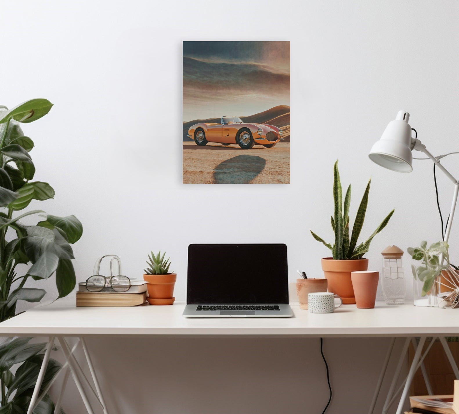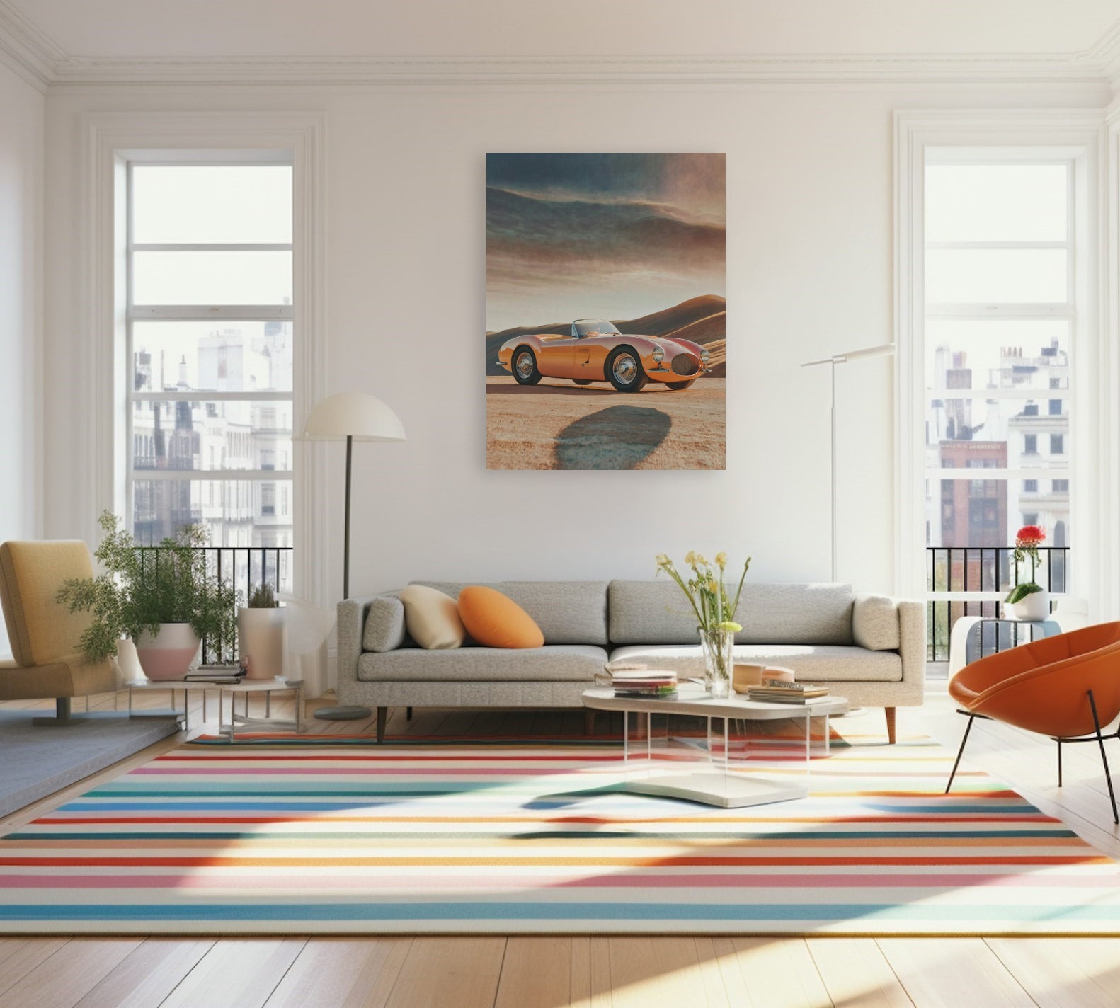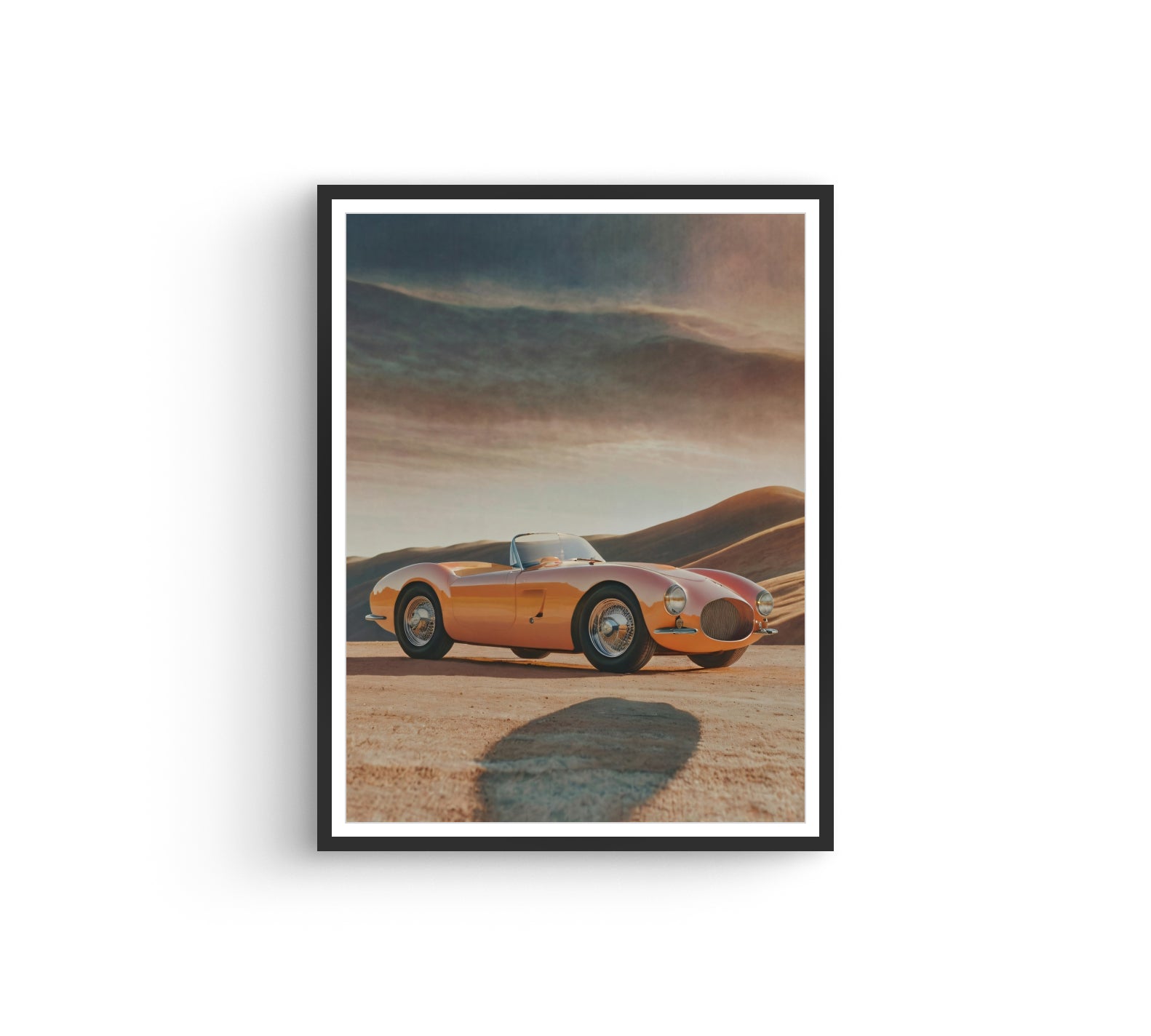 A vintage car poster featuring a 1960s muscle car against a retro backdrop. Perfect for car enthusiasts.