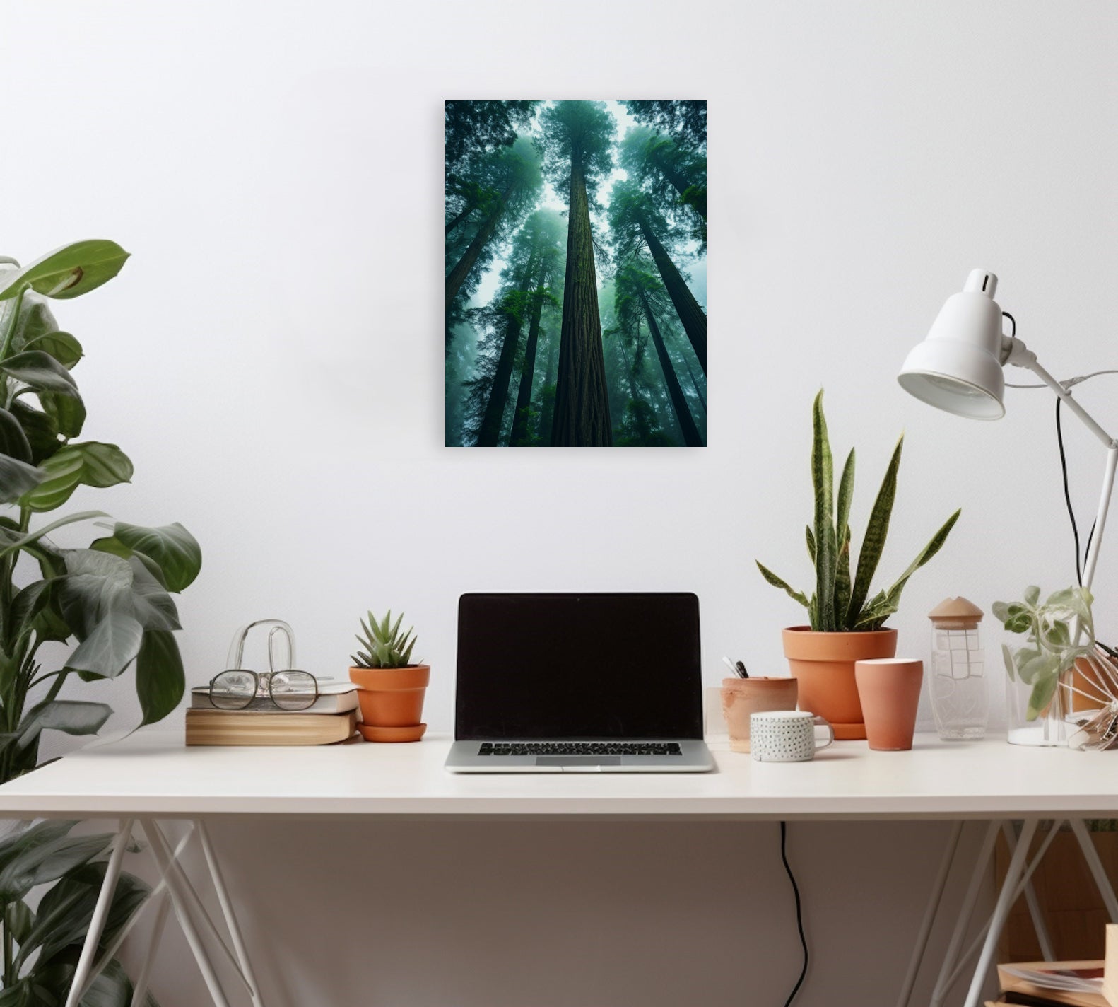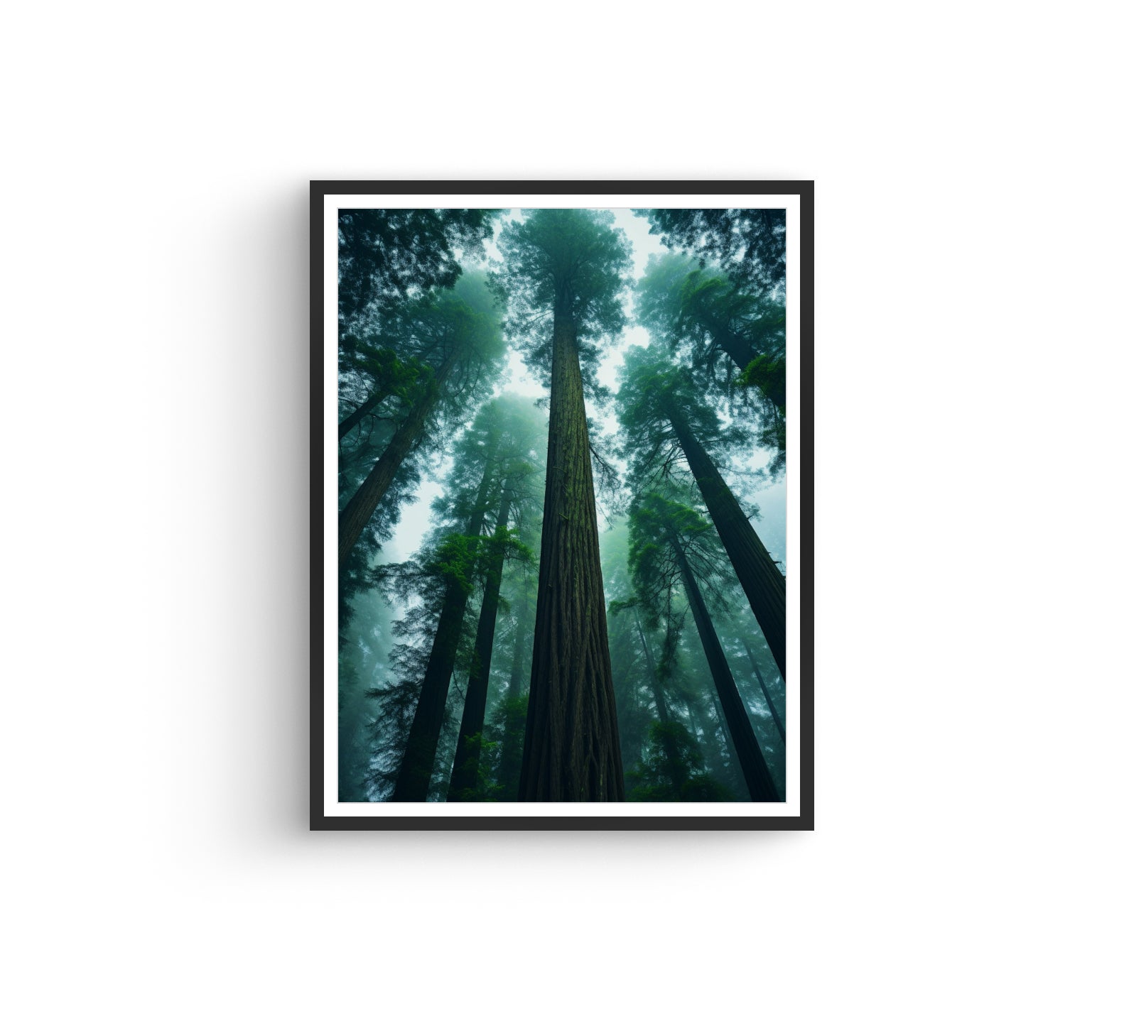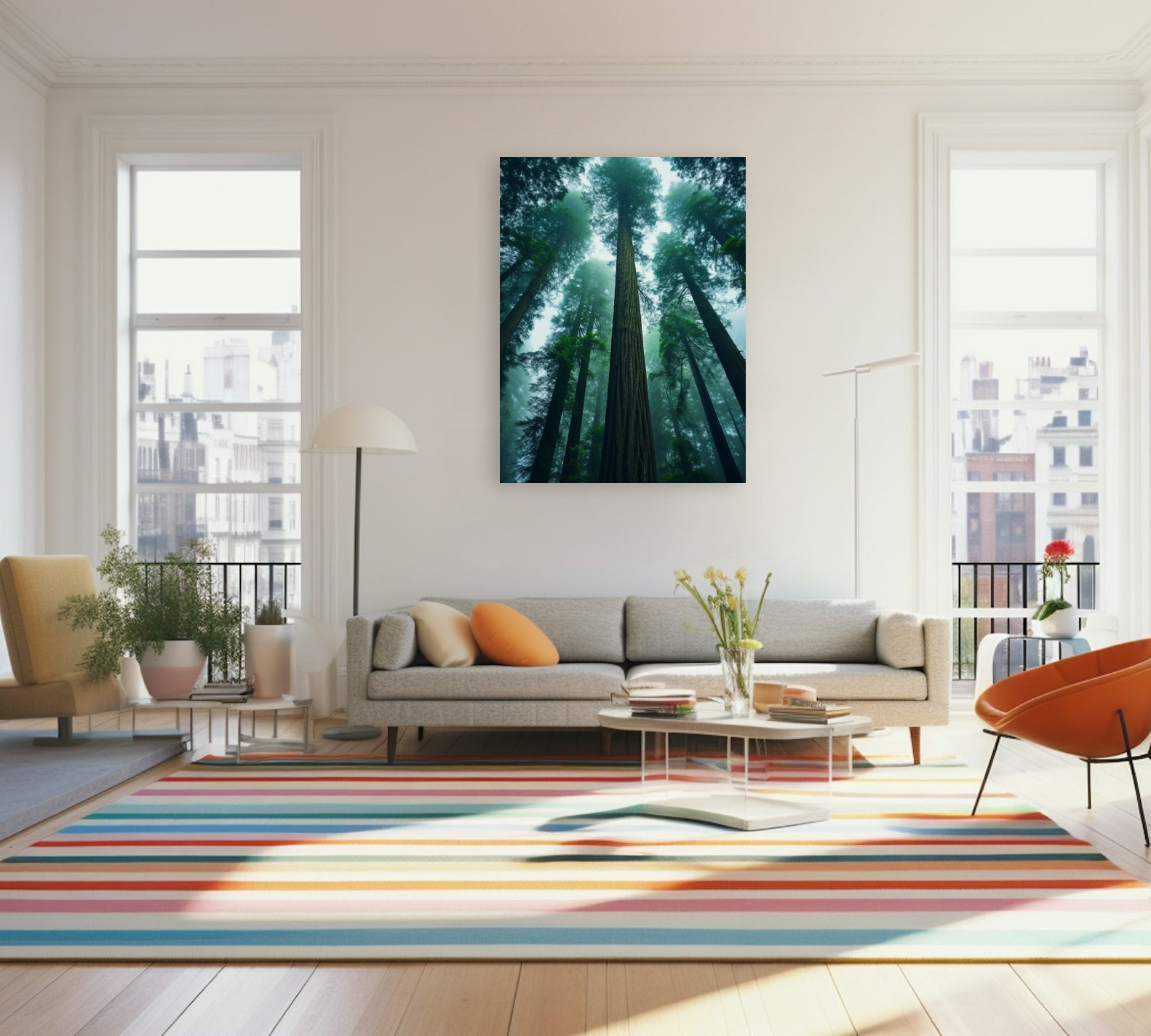 A serene depiction of a misty forest, with sunlight breaking through the trees. Great for bringing a sense of tranquility indoors.